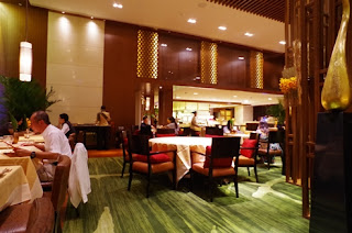 我被安排的座位,是較細的二人檯,也是這個酒店加晚餐的專用區域。檯與檯之間只有不足兩尺的距離,完全可以聽到隔鄰的食客談話內容。曾經問過侍應可否換到較闊絡的桌子,就算是有空位,答案當然是不可以。